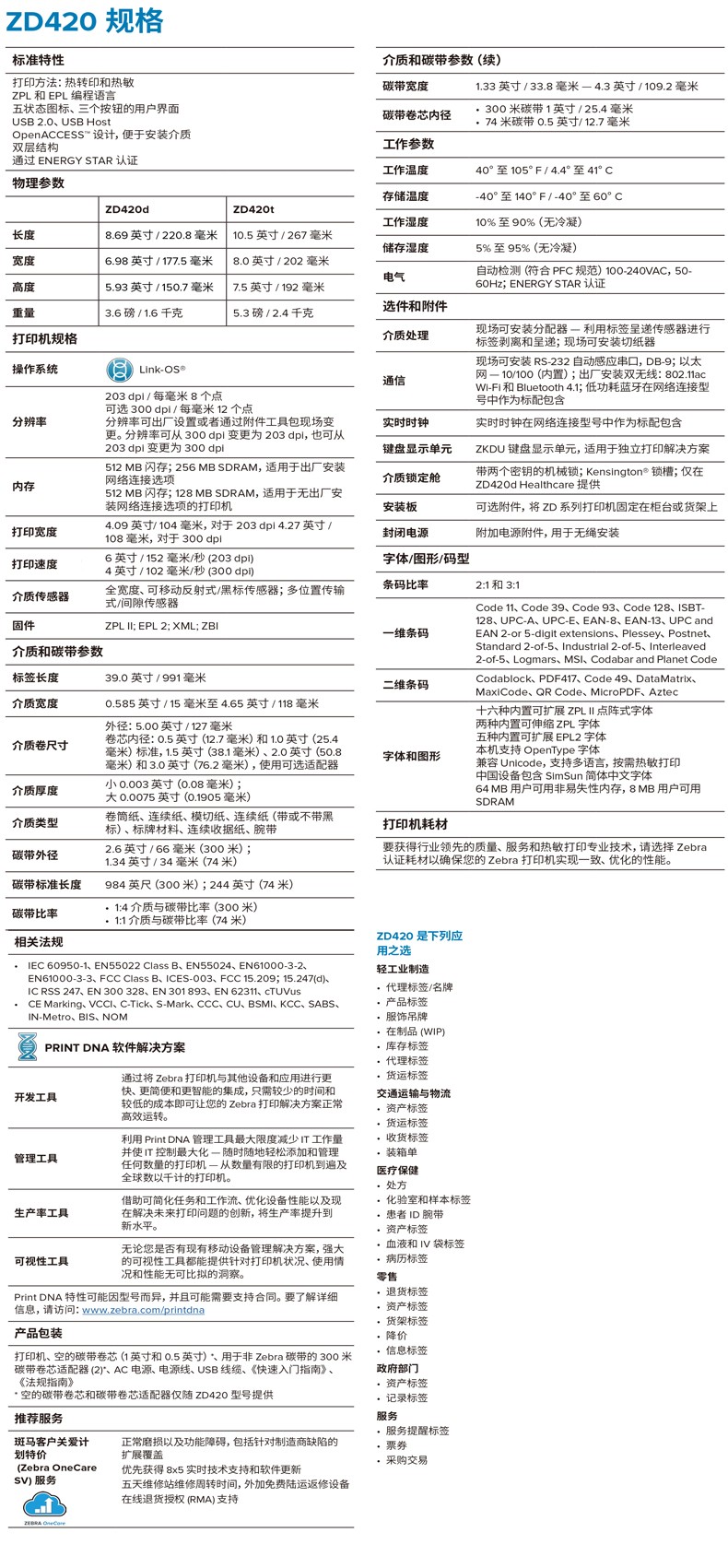 ZD420T斑马条码打印机